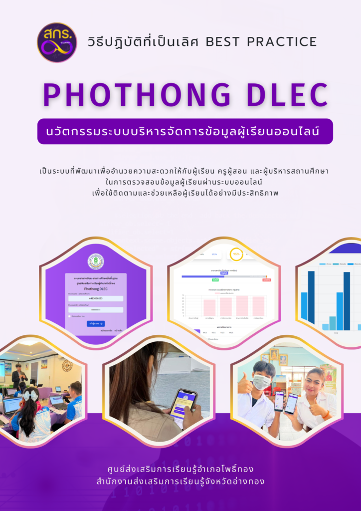 OLIS DLEC นวัตกรรมระบบบริหารจัดการข้อมูลผู้เรียนออนไลน์ เป็นระบบที่พัฒนาขึ้น โดยใช้ฐานข้อมูลของโปรแกรมทะเบียนนักศึกษา ITW51 เพื่ออำนวยความสะดวกให้กับ ผู้เรียน ครูผู้สอน และผู้บริหารสถานศึกษา