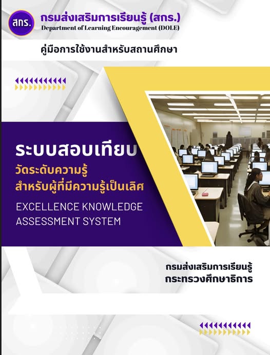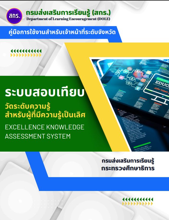 - คู่มือการใช้งาน ระบบสอบเทียบวัดระดับความรู้สำหรับผู้ที่มีความรู้เป็นเลิศ EXCELLENCE KNOWLEDGEASSESSMENT SYSTEM (สำหรับสถานศึกษา)Views: 3